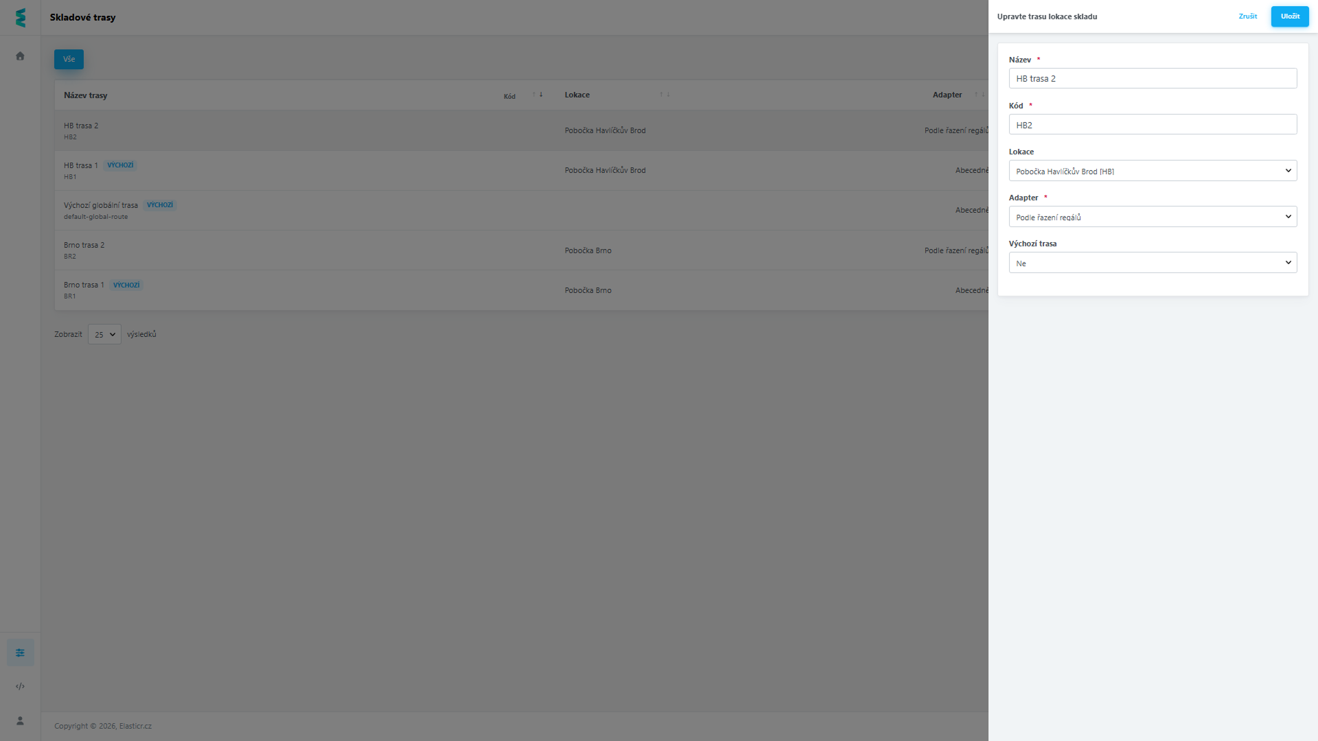 - Flexibilita: Pro jednu lokaci můžete vytvořit více různých tras a libovolně mezi nimi přepínat podle aktuální potřeby skladu.