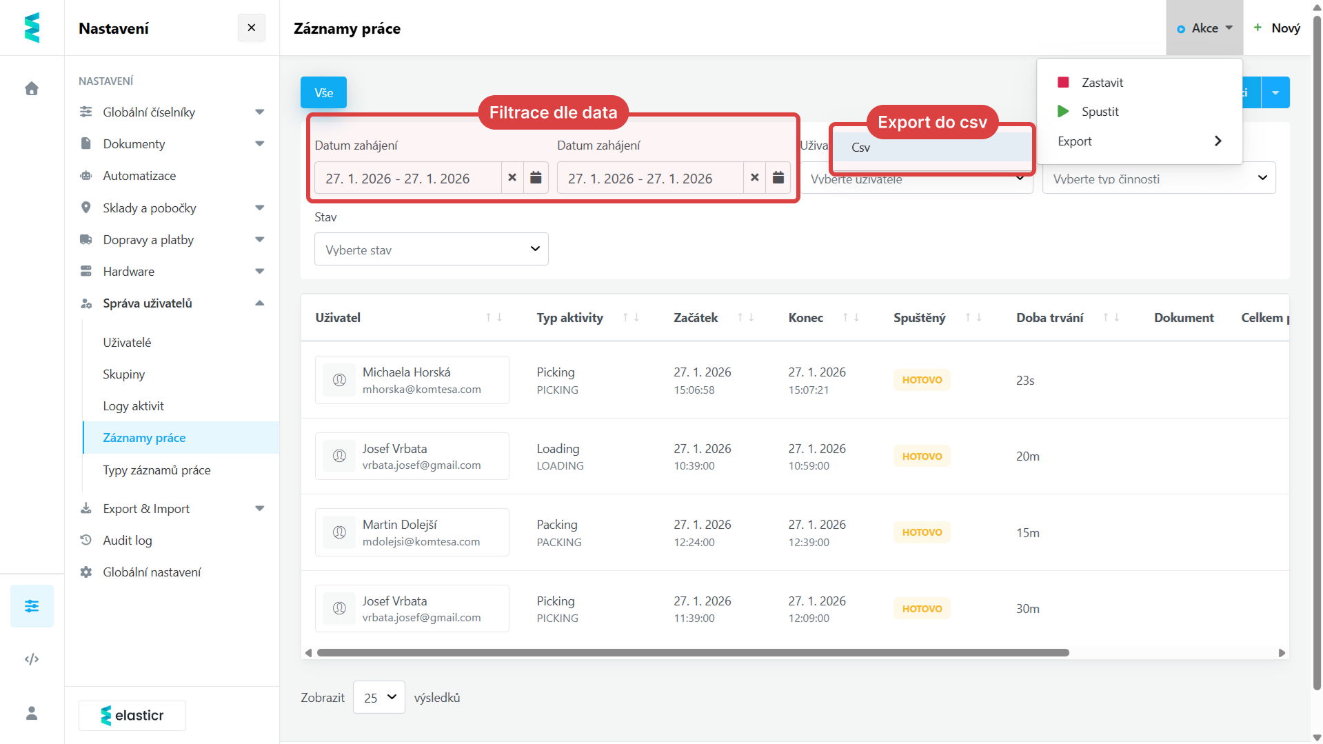 - Chytré filtrování a export: Nově můžete filtrovat podle konkrétních dat a výsledný výběr jedním kliknutím exportovat do CSV pro další analýzu.
