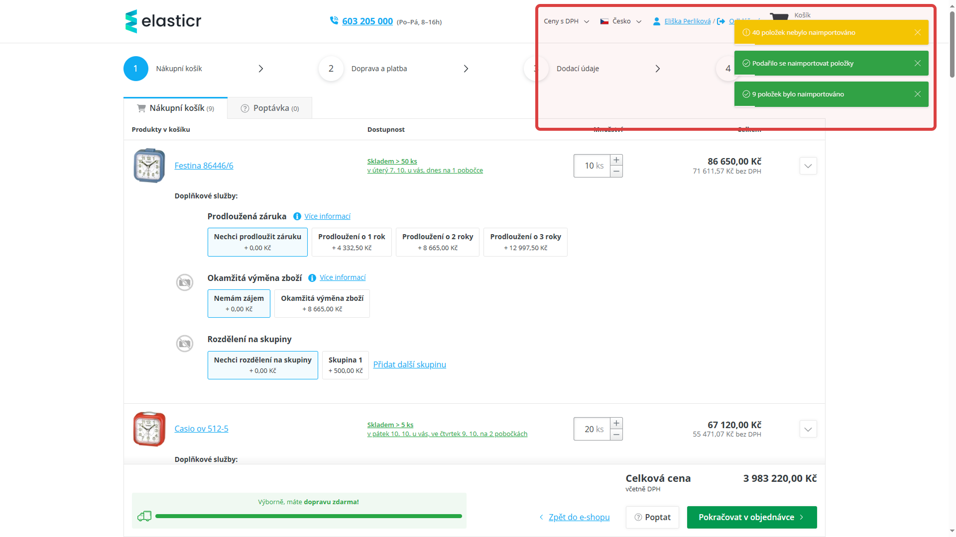 Hromadné přidání zboží do košíku přes import