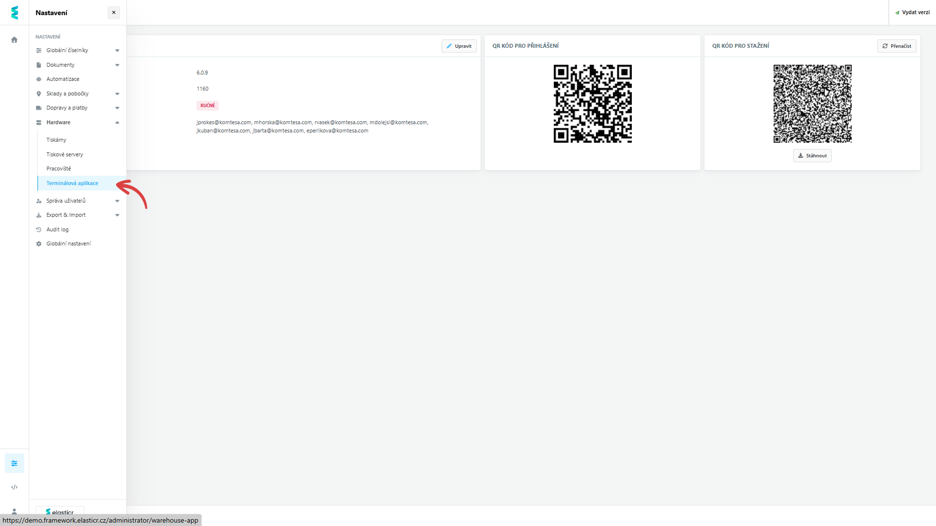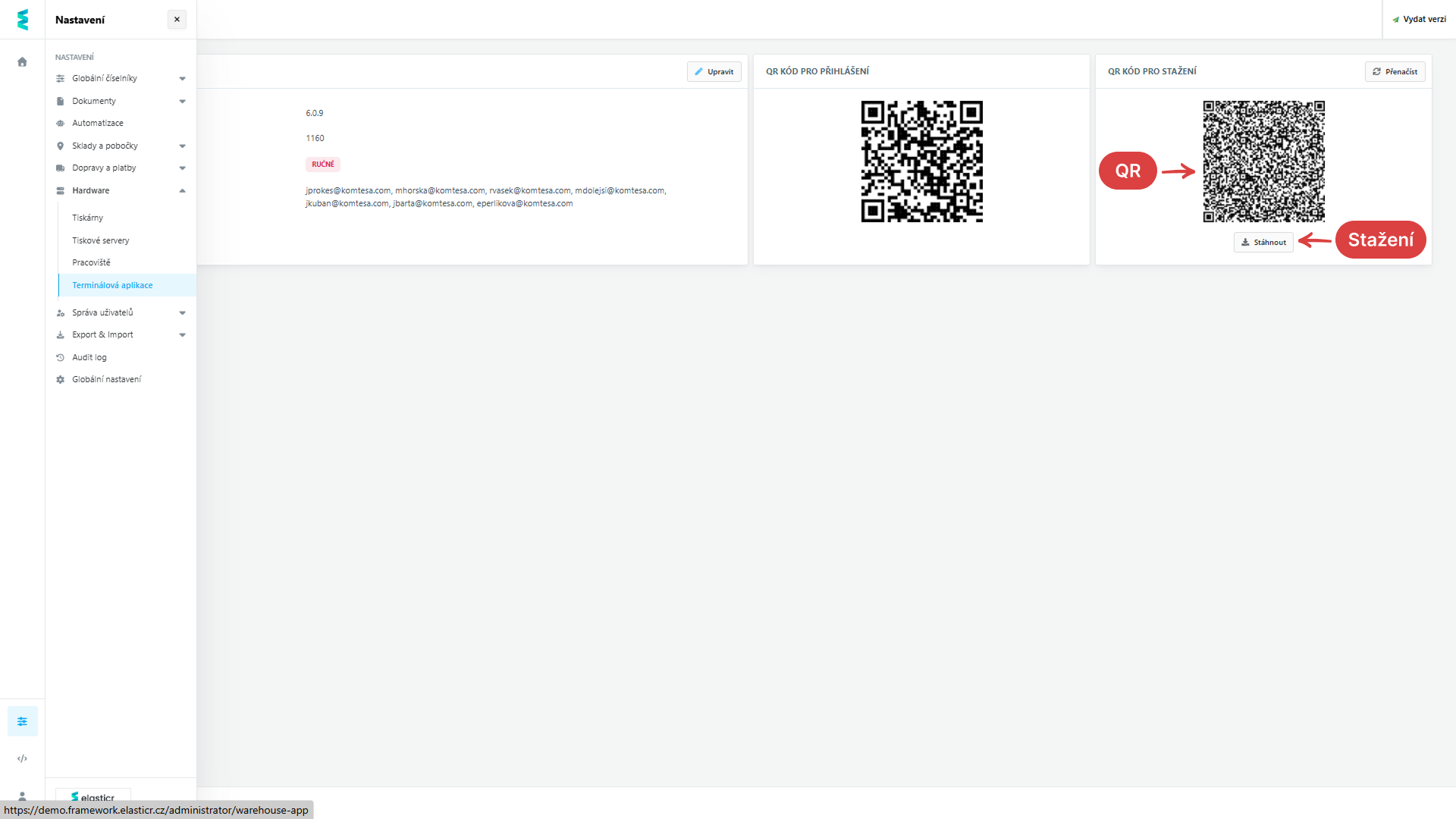 - Stáhnout přímo v prohlížeči mobilního terminálu po přihlášení do administrace.