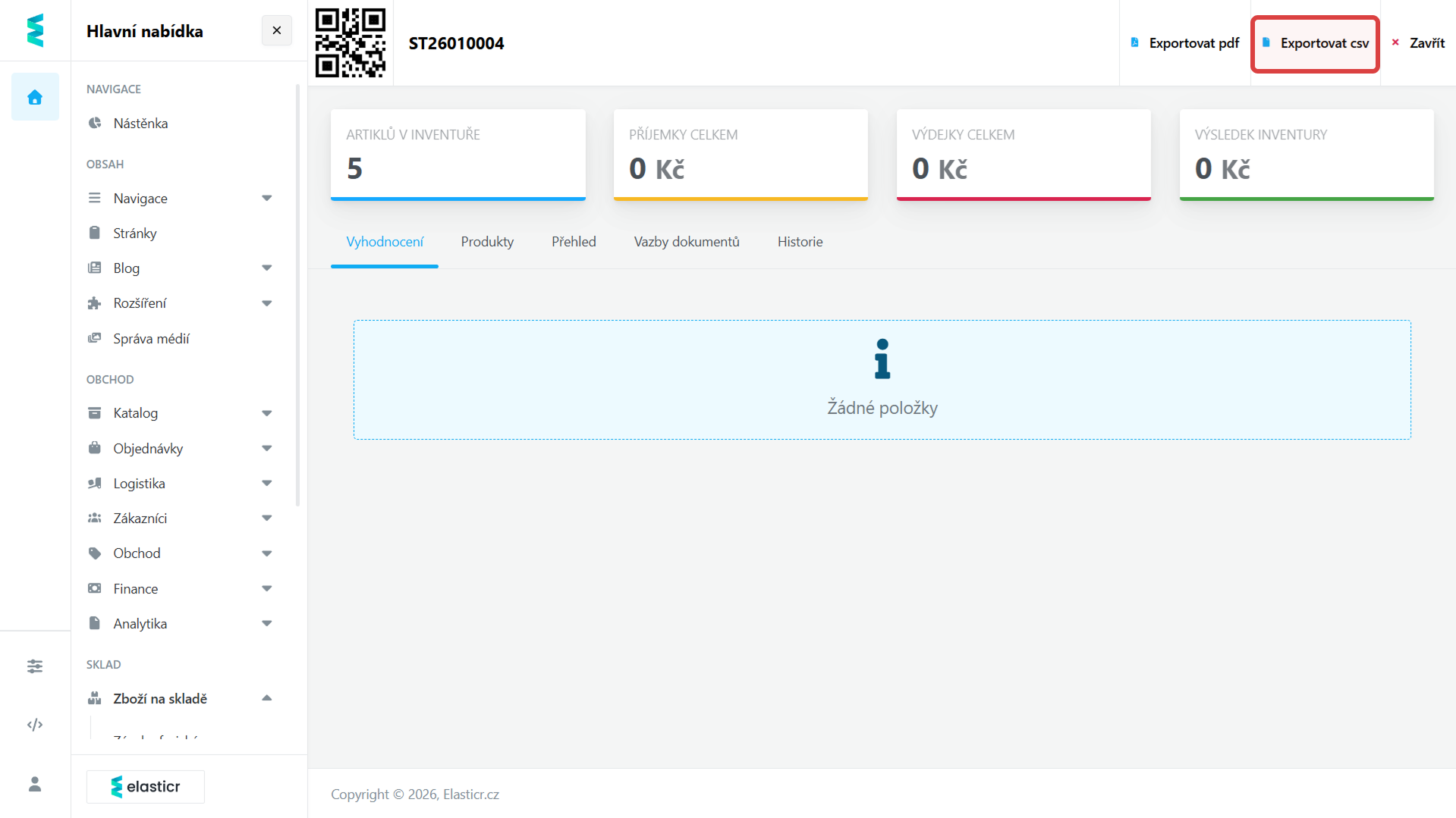 Po uzavření inventury bylo dosud možné výsledky exportovat pouze do PDF. Nově k již existujícímu PDF exportu přibyla možnost exportovat uzavřenou inventuru také do CSV souboru.