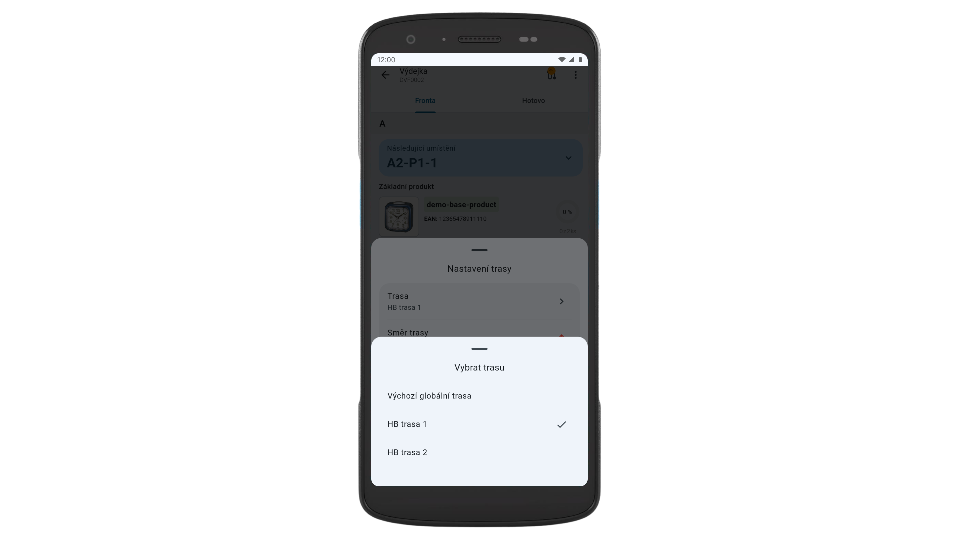 V terminálu může skladník při zahájení pickování vybrat prostřednictvím ikony trasy jednu z předdefinovaných tras.