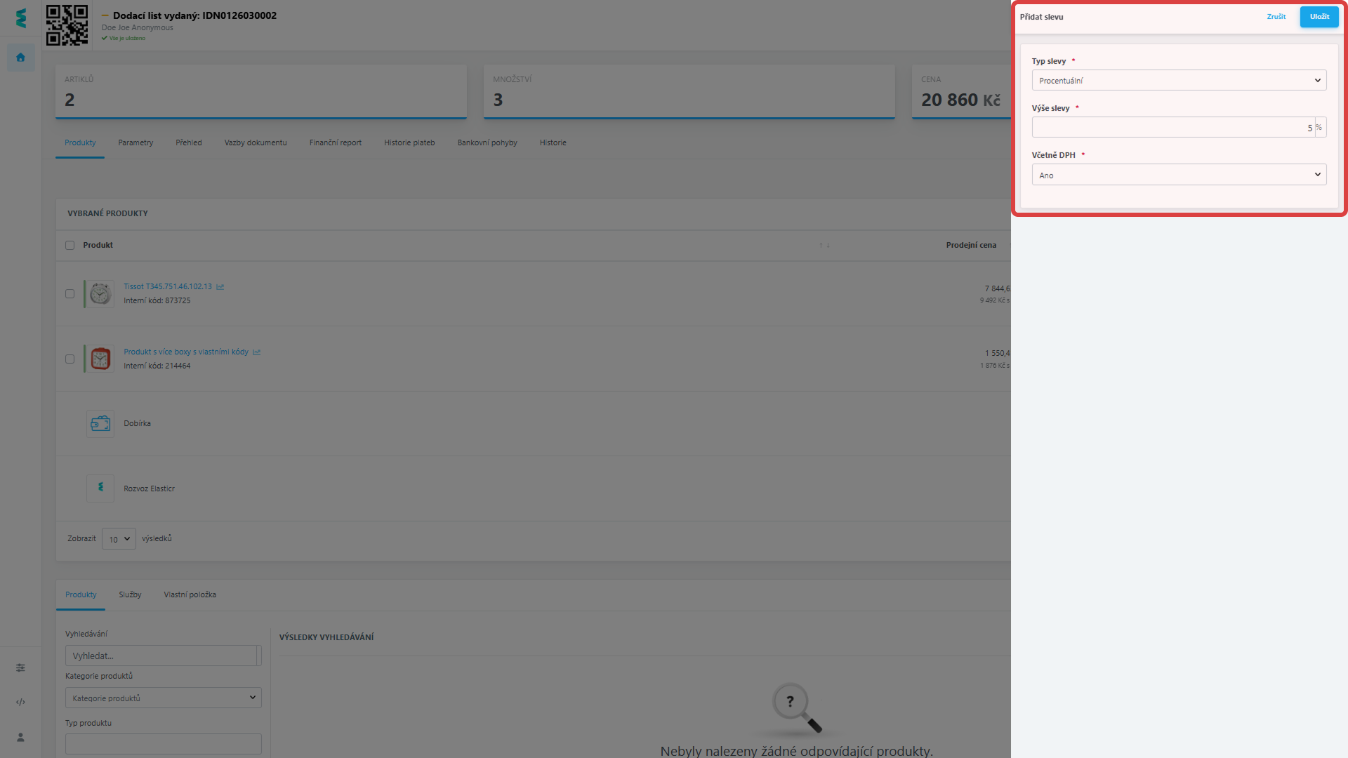 Přidání slevy do rozpracovaných dodacích listů
