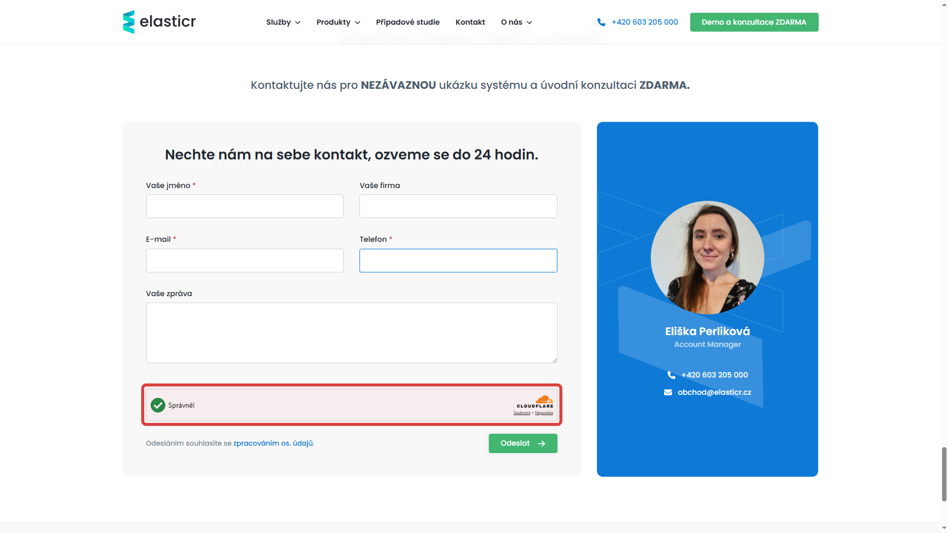 - Relevantní kontaktní formuláře: Turnstile odstraňuje spam v poptávkových a kontaktních formulářích.