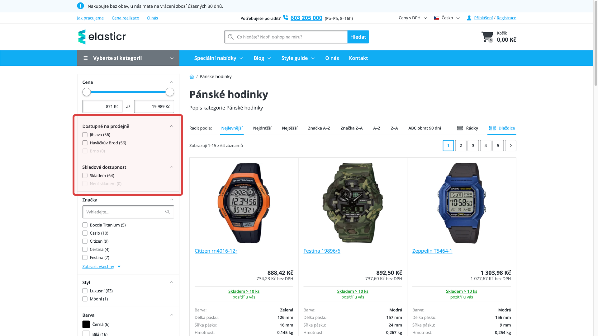 Do produktových parametrů jsme nově přidali zobrazení dostupnosti na pobočkách. Díky tomu si mohou zákazníci na e-shopu pomocí kombinace filtrů (pobočka a stav skladem) zobrazit dostupné položky na konkrétních prodejnách.