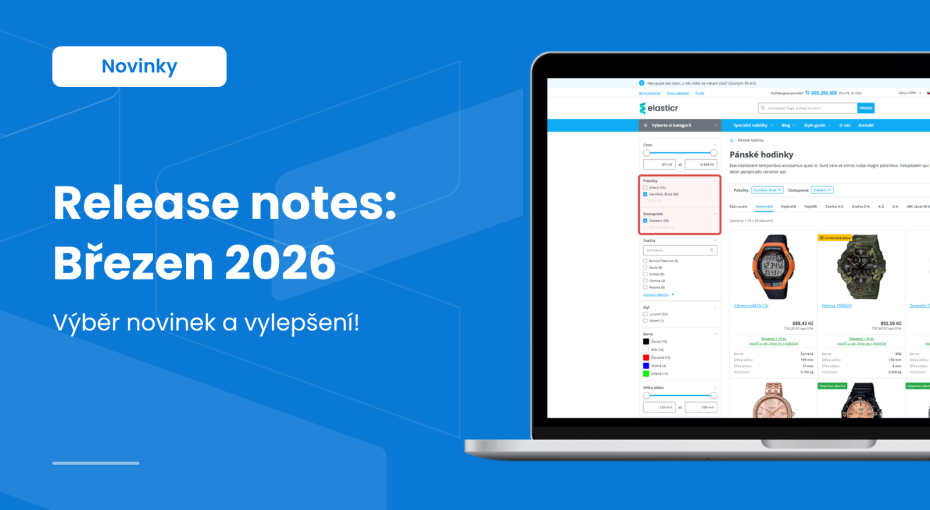 Březen v Elasticru startujeme představením vlastního AI nástroje Elly AI. Dále jsme rozšířili možnost hromadných úprav produktů, vylepšili navigaci e-shopu o zobrazení dalších kategorií a přidali filtraci zboží dostupného na pobočkách. Vaše formuláře nově chrání neinvazivní zabezpečení Cloudflare Turnstile a k možnostem expedice jsme doplnili možnost tisku štítků přes Label Printer.