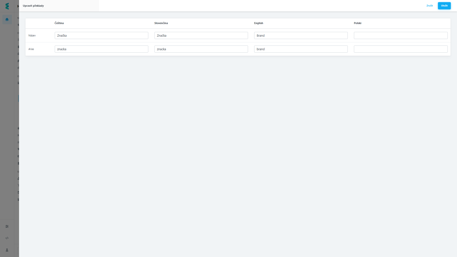 Systém je plně multijazyčný. Kliknutím na ikonu tužky u konkrétní hodnoty můžete spravovat její lokalizaci: